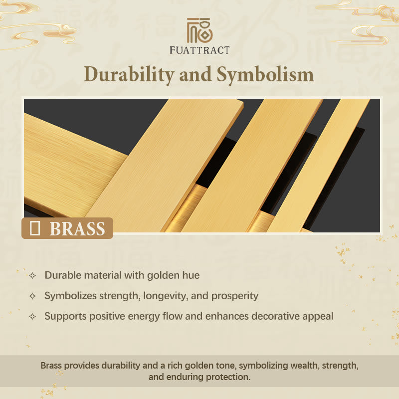 Brass provides durability and a rich golden tone, symbolizing wealth, strength, and enduring protection.