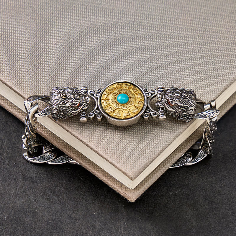 FuAttract Protection & Fortune Turquoise Wheel Curb Chain Bracelet – Dual Pixiu Talisman