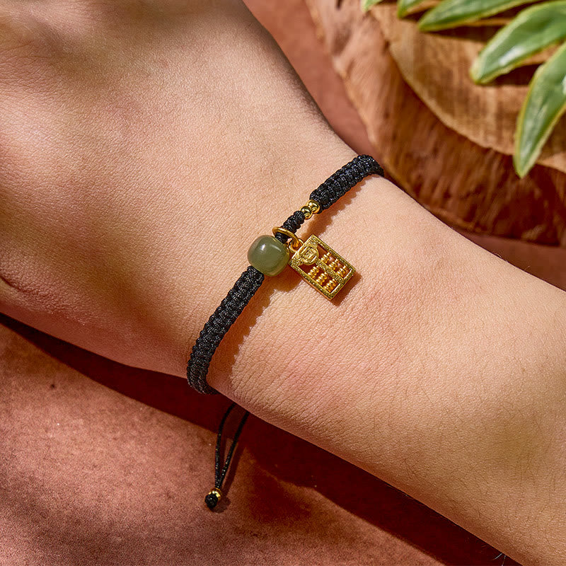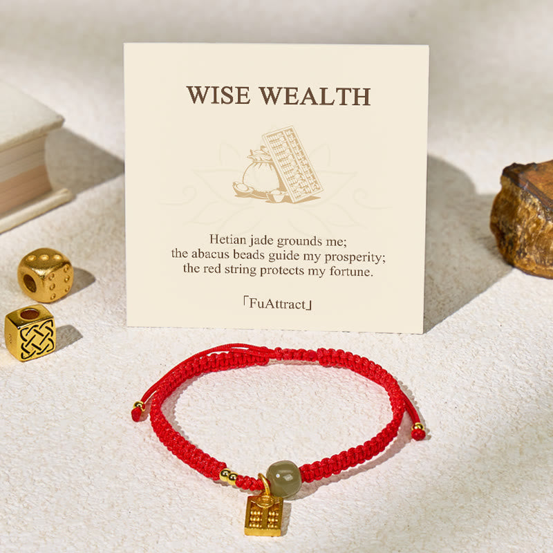 FuAttract Wealth Protection Hetian Jade Abacus Red String Bracelet