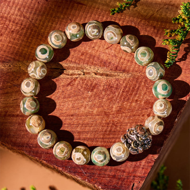 FuAttract Wealth & Protection Three-Eyed Dzi Agate Bracelet with Pixiu