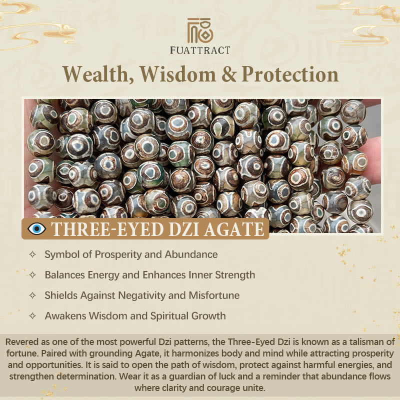 Harness the ancient power of the Three-Eyed Dzi Agate and the mystical Pixiu — a timeless talisman crafted to channel wisdom, guard against negativity, and open the flow of prosperity on your spiritual journey.