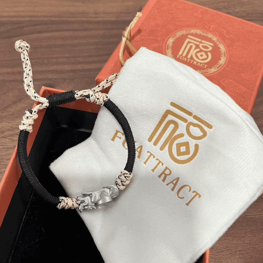 Fuattract Prosperity Braid - Hand-Knotted Fu Charm Silver Pixiu String Bracelet
