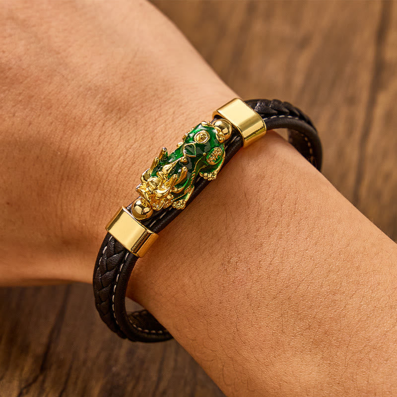 FuAttract Wealth & Success Black Leather Pixiu Men's Bracelet